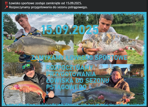 12.10.2024 odbędą się zawody spinningowe https://fb.me/e/42hEHhb9r zapisy sms 792-907-846